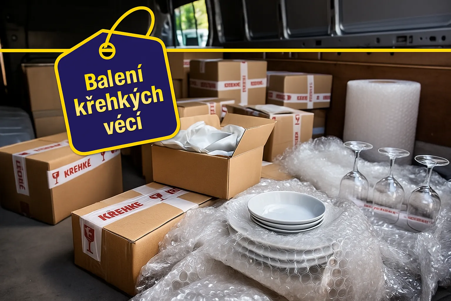 Při stěhování nebo převozu nákladu dodávkou hrozí křehkým věcem několik rizik: nárazy, vibrace během jízdy, tření o jiné předměty nebo prostý pád při nakládání. Jeden špatně zabalený talíř dokáže poškodit celou krabici nádobí. Skleněná deska bez ochrany hran praskne už při menším nárazu.