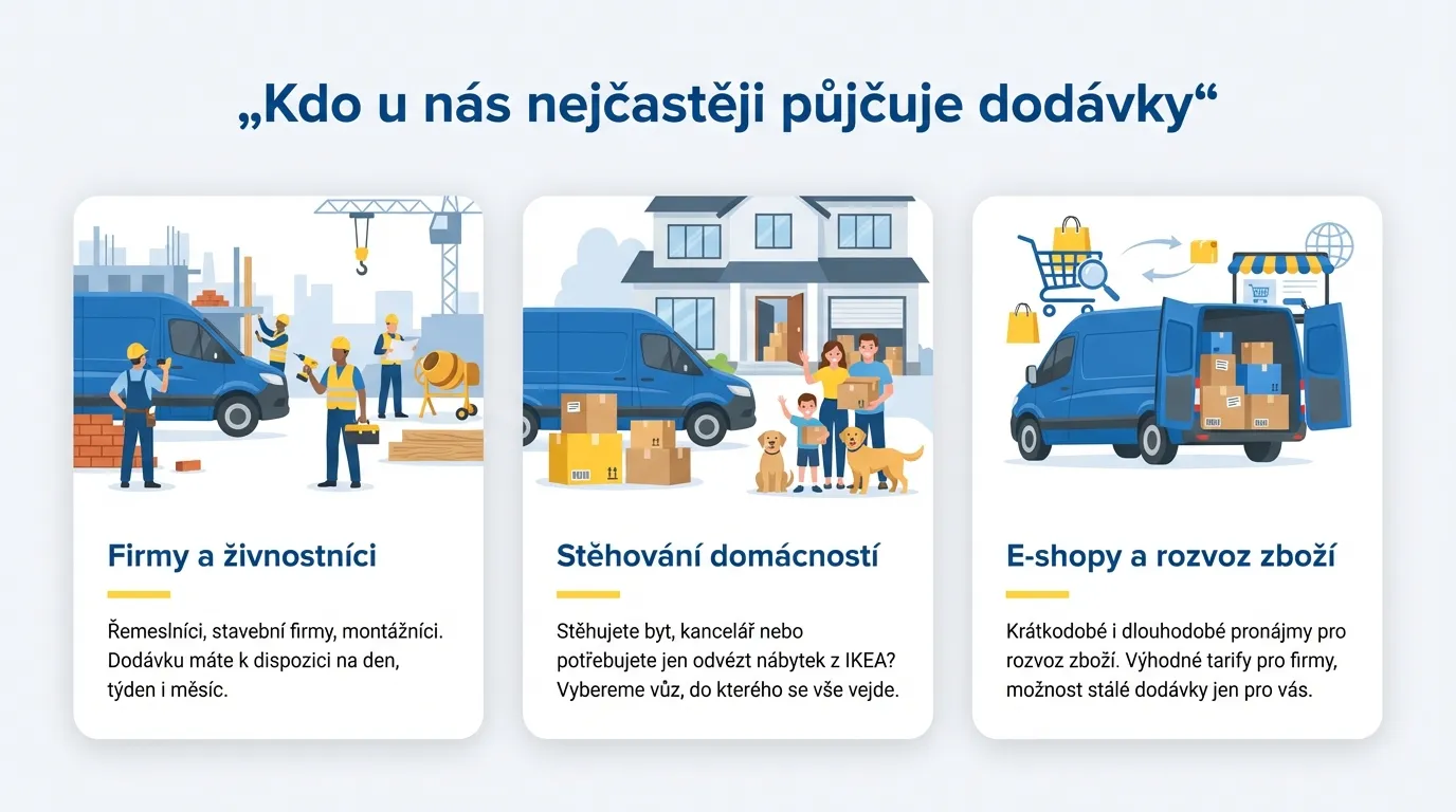 Pronájem dodávek, minibusů a přívěsů v Praze – ideální pro stěhování, rozvoz zboží i stavební práce.